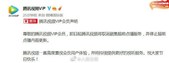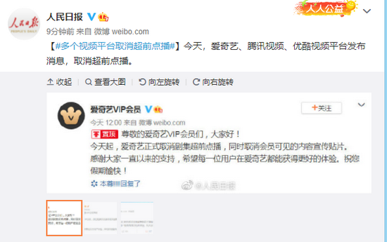 在爱奇艺VIP会员的官方微博下,有网友点名“腾讯视频”卷起来;但也有网友表示不赞同取消超前点播,如果该功能取消,将无法用任何方式提前观看。
