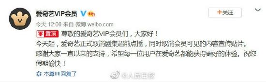 爱奇艺创始人、CEO龚宇在微博回应:“不断提升会员消费体验和满意度是我们长期努力的目标,哪怕短期收益受损。”